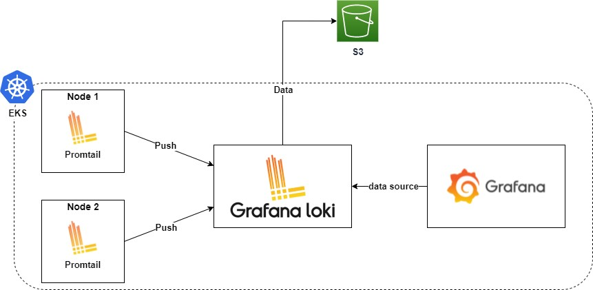 - Promtail을 통해 수집된 로그 데이터(index, chunk)를 S3에 보관한다.