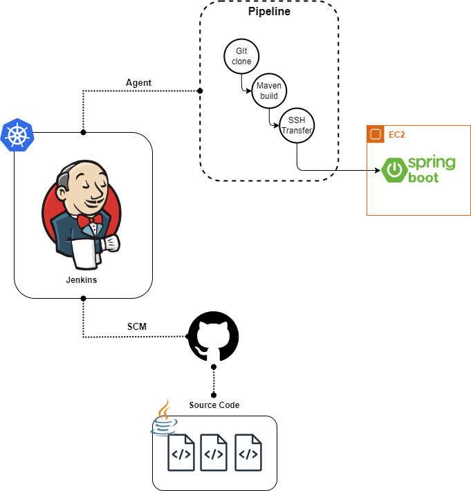 - 빌드된 결과파일(*. jar)을 원격 VM에 전송하고, 실행 스크립트가 실행되어 애플리케이션을 실행한다.