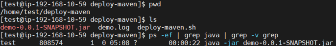 - 'deploy-maven'으로 입력했기 때문에 원격 서버의 홈디렉터리 아래 deploy-maven 디렉터리이다.